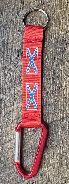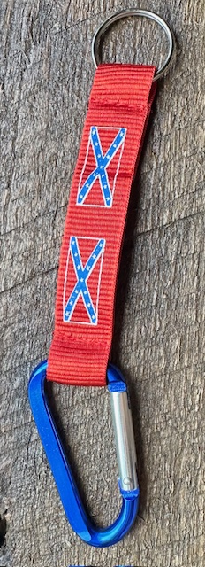 This battle flag key ring with carabiner clip comes in your choice of red or blue carabiner. Measures 7.5″ long.