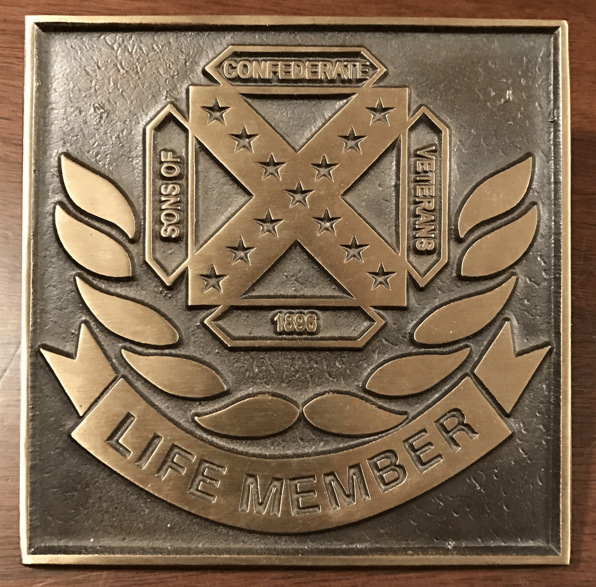 Designed for adornment of SCV Life Members’ gravestones. Fastened to the stone with a screw back for professional mounting. 5″ x 5″