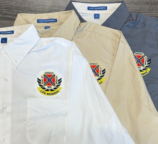 These beautiful long sleeve oxford shirts are embroidered with the Life Member logo. Available in white, khaki or dark gray in Medium – 4X.
