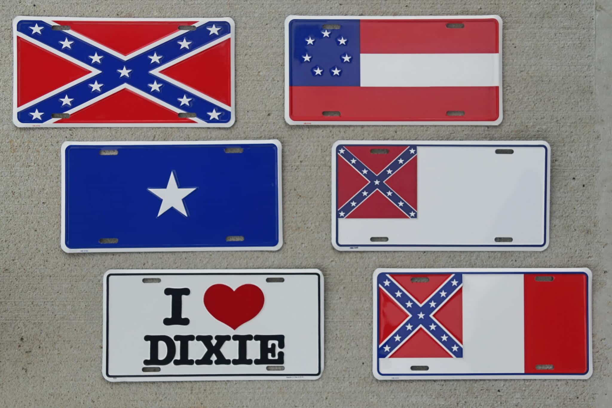 | Plate | I Love Dixie, 1st National, 2nd National, 3rd National, Battle Flag, Bonnie Blue |