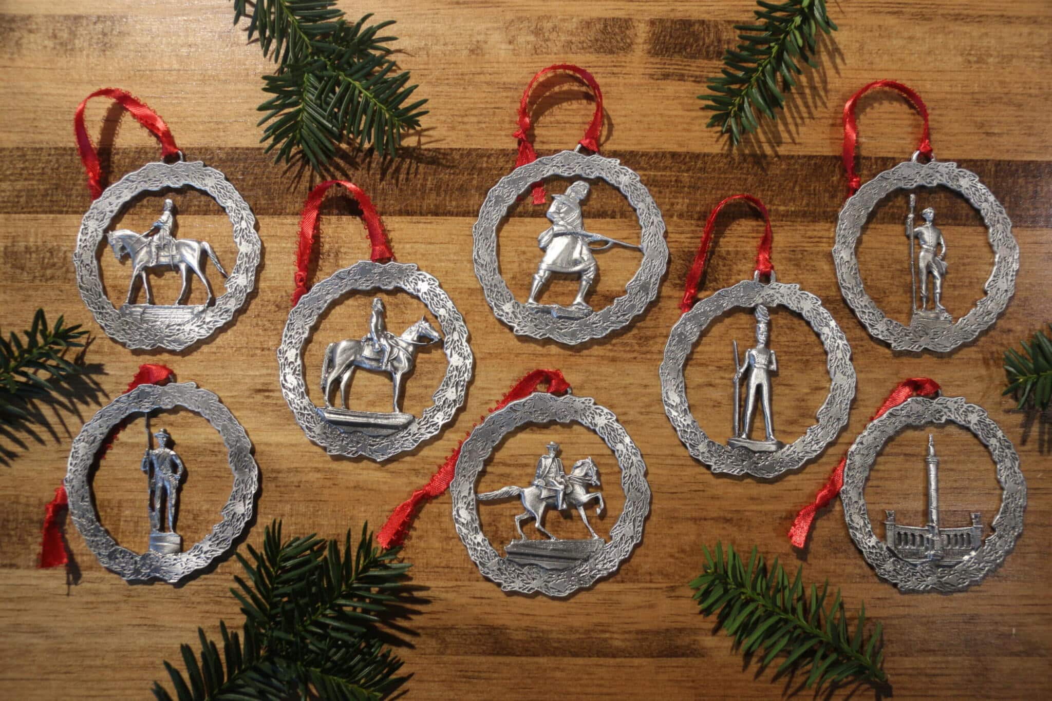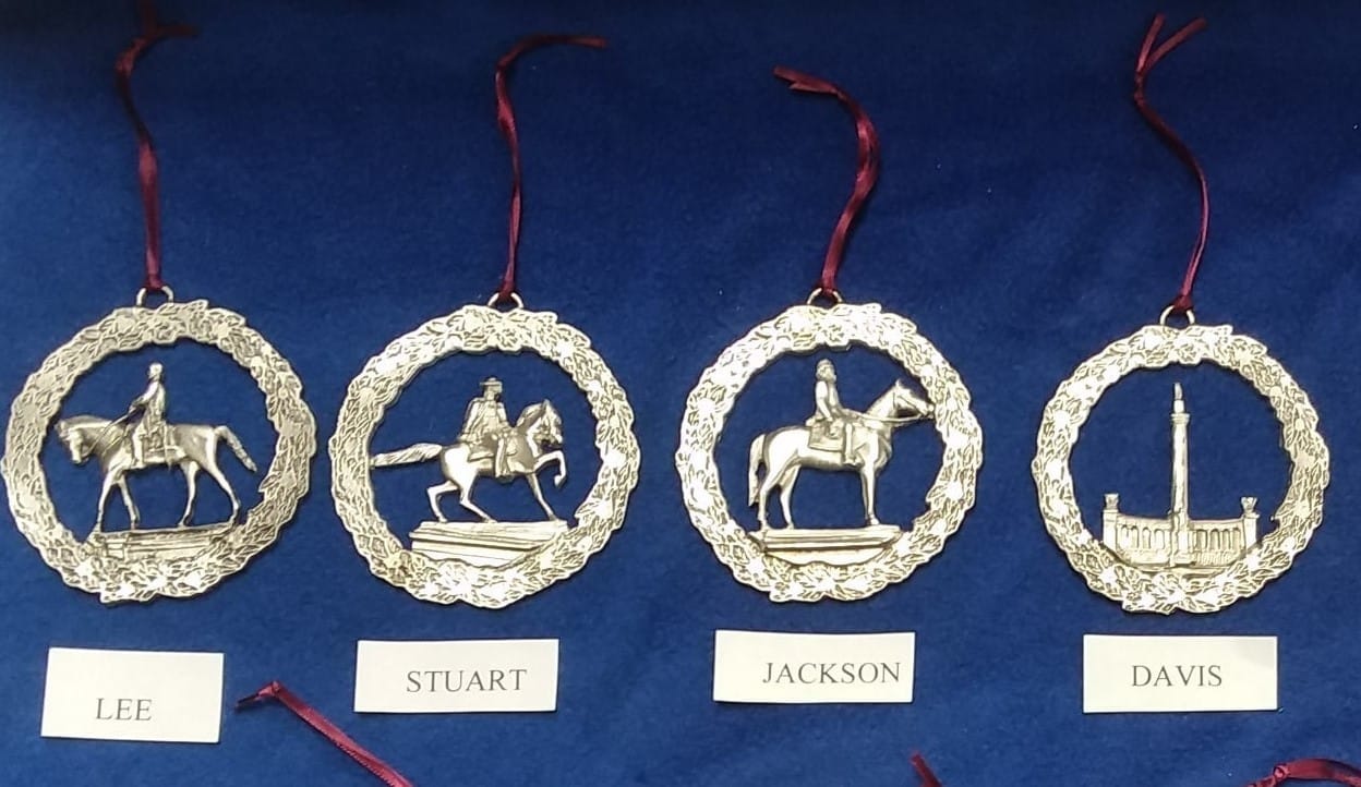 Pewter ornaments that are handmade in Virginia that commemorate Monument Avenue in Richmond.