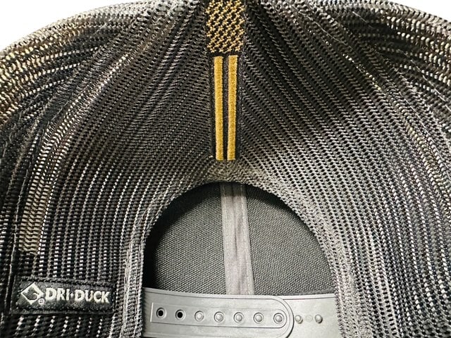3.) Khaki structured crown and visor. Khaki stitching and charcoal gray mesh – logo laser engraved patch. Thin honor flag embroidered on the back. Made by Dri-Duck. Adjustable back. This is a really nice hat!