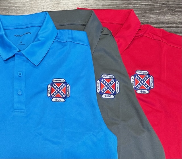 This 100% polyester moisture-wicking polo by Port Authority is embroidered with the SCV logo and will help keep you cool on warm days. This shirt is snag-resistant and the tag-free label is comfortable against your skin. Available in Brilliant Blue, Red and Steel Grey in sizes M – 4X.