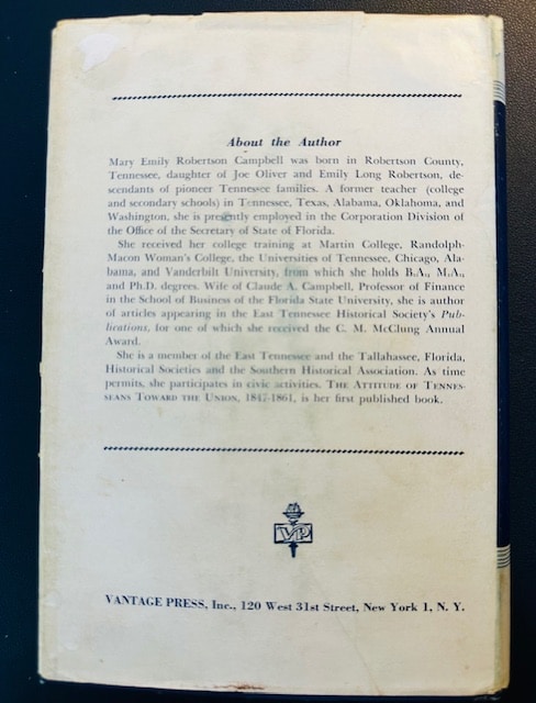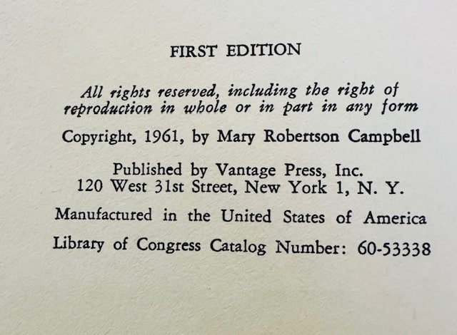 By Mary Emily Robertson Campbell. Published in 1961 (FIRST EDITION), hardback. 308 pages and in good condition although the pages have turned brown on the edges. The dust jacket has been badly torn on the front and there is writing on one of the inside pages. ONLY ONE AVAILABLE